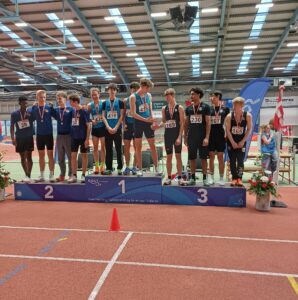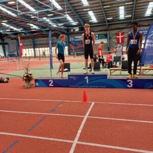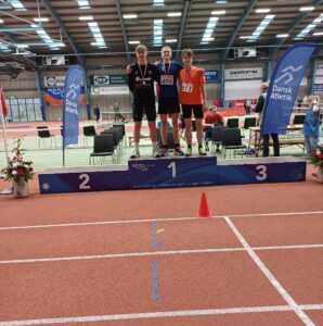 HGF Atletik har været til DM Inde for Ungdom, FORÅRETS HØJDEPUNKT, og kom hjem med 7 medaljer, 2 guld, 2 sølv og 3 bronze. De 2 guld blev vundet af TAK-eleverne Malthe Heesgaard på 400m og Bastian Haulund Nielsen på 800m, og for Bastian var det også PR. Sølvet gik til Madison Hasle Tarp på 3000m, og det er også PR, og Madison er også TAK-elev. Den anden sølvmedalje gik til Ditlev Voss i trespring, og også han satte en flot PR. De 3 x bronze gik til samme Malthe, denne gang på 800m og til Bastian på 60m. Bastian satte en flot PR i det indledende heat, og han nærmer sig klubrekorder, som tilhører ingen ringere end Simon Hansen, også tidligere TAK’ er og nu Danmarks hurtigste. Simon overrakte medaljerne, og det faldt i rigtig god jord. Den sidste bronze blev hentet i stafetløb, 4x200m, af Gustav Bryholt, Vijesh Sekar, Manuel Garcia og Bastian, og det var sandelig KLUBREKORD. HGF var af sted med 16 deltagere, og der blev opnået mange PR, selv om influenzaen sad i flere af dem.
